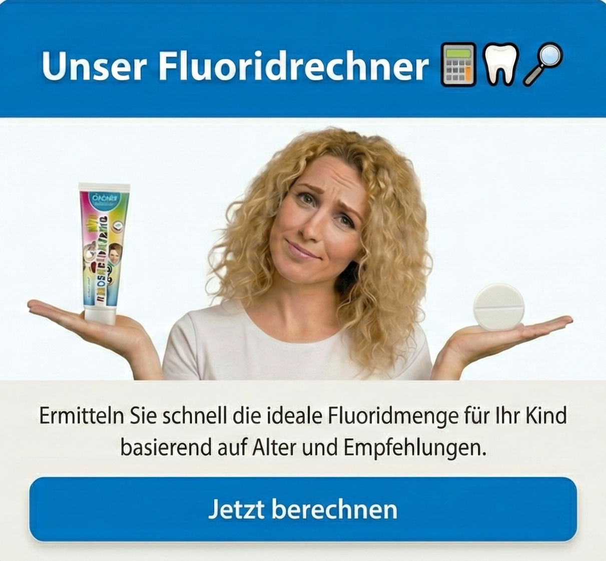 Die Tablettenfluoridierung wurde bisher vor allem für Kinder unter zwei Jahren als sinnvoll angesehen. Da sich aber in den vergangenen Jahren immer mehr die Erkenntnis durchgesetzt hat, dass Fluoride vor allem durch direkten Kontakt mit der Zahnoberfläche, also lokal, wirken, kann laut einer Empfehlung der Deutschen Gesellschaft für Zahn-, Mund- und Kieferheilkunde (DGZMK) auf die unmittelbar nach der Geburt einsetzende Tablettenfluoridierung verzichtet werden, da zu diesem Zeitpunkt noch keine Zähne in der Mundhöhle stehen. Stattdessen sollten Sie ab dem Durchbruch der ersten Milchzähne eine Kinderzahnpasta mit 500 ppm Fluorid verwenden.